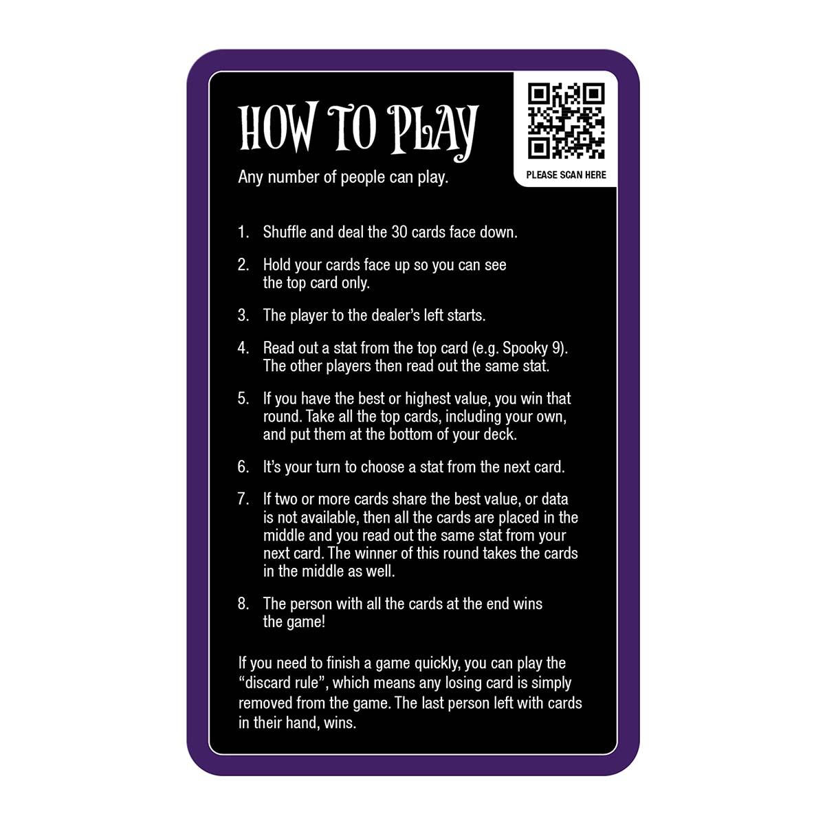 What's this?! What's this?! It's a brand new The Nightmare Before Christmas edition of Top Trumps! Gather your friends and reexperience all your favourite moments from Tim Burton's The Nightmare Before Christmas. Join the Pumpkin King and challenge your friends to see which moment has the highest score. With categories like Holiday Spirit and Spooky, will your opponents run to the Hinterlands? Or will you win the game before there are only 364 days before the next Halloween? Find out with this all new special edition of Tim Burton's The Nightmare Before Christmas Top Trumps!