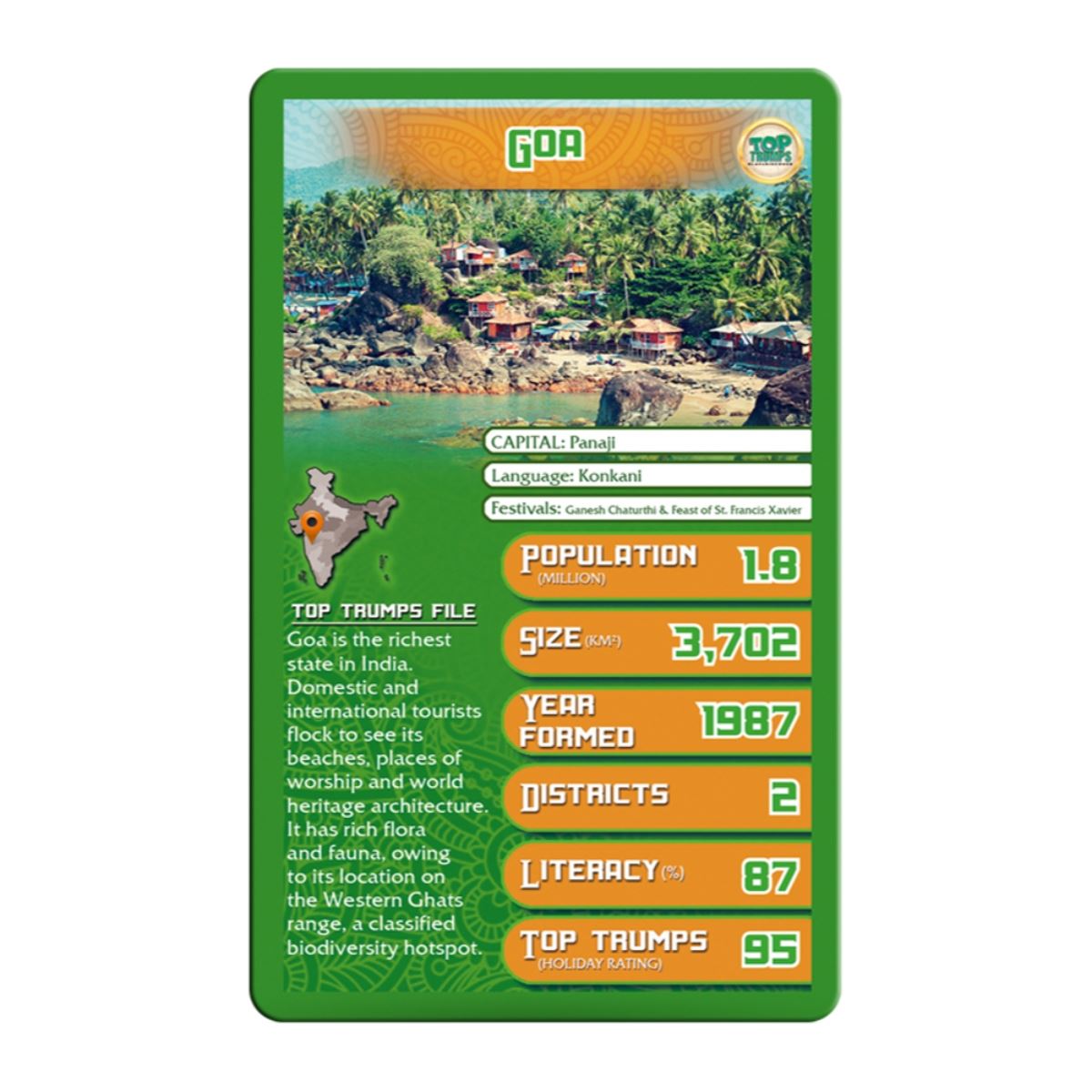 This special edition pack contains 36 games cards covering all the States of India and the Union Territories, making it a complete Educational tool, with rich information about the Population, Size and Literacy percentage of each state and union territory, the year formed, the no of districts, and lots more!