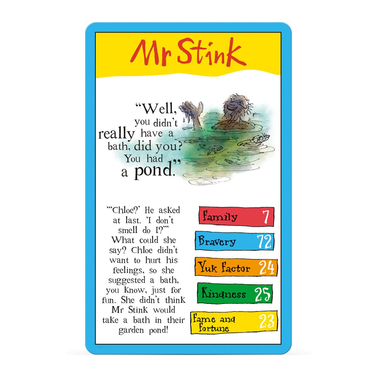 Discover which of your favourite David Walliams books has the best moment in this Top Trumps card game featuring scenes from Gangsta Granny, Ratburger, The Boy in the Dress, Awful Auntie, Billionaire Boy, Mr Stink and Grandpa’s Great Escape! Play The World of David Walliams Top Trumps, the educational card game, and see if Mr Stink’s earplugs or Stella’s poltergeist-ing tricks has the most yuk factor, or if Armitage or Raj has the most kindness. Whatever your favourite book or character is, The World of David Walliams Top Trumps is the game for you!